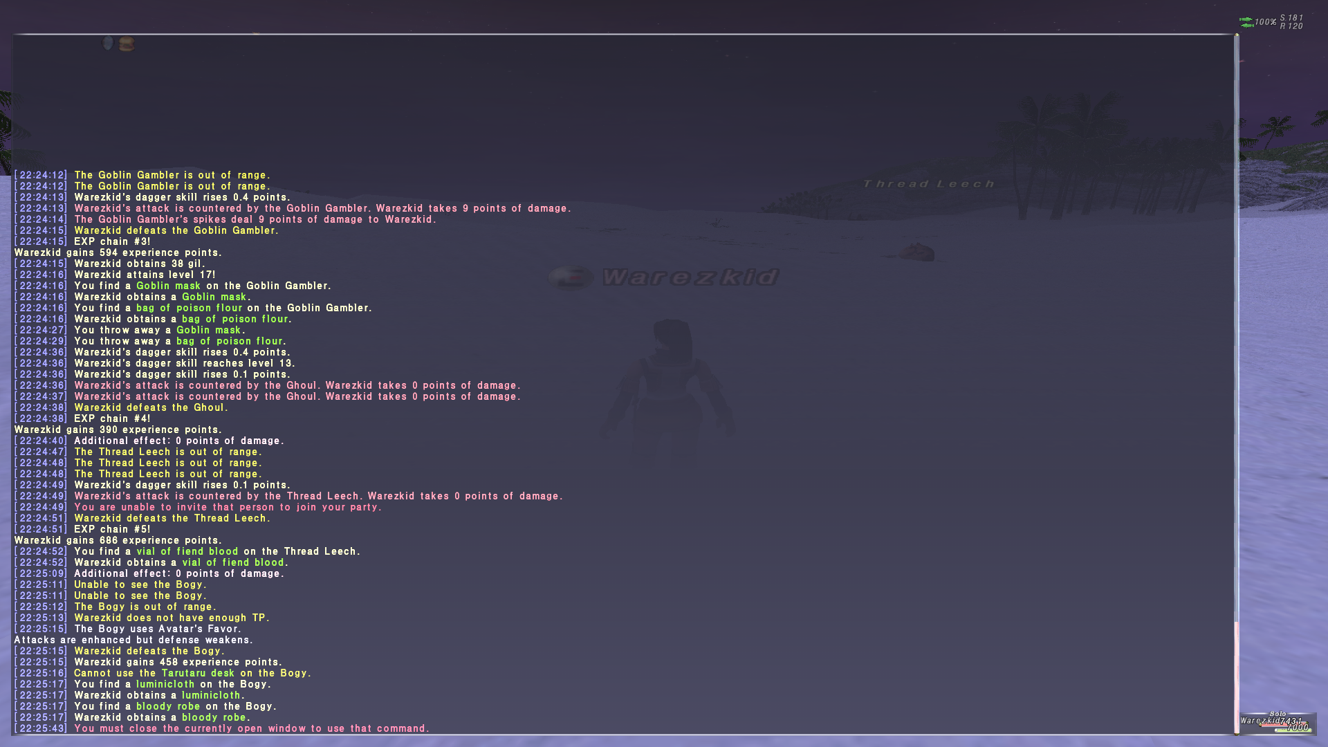 every time i tried to kill something it would show me doing damage and then pol.exe crash, but the past 10-15mins it wasn't crashing, it was reporting my attacks as the monster countering me which could be due to the weapon i was using, but also when using Mercy Stroke it would say "Cannot use the Tarutaru desk on the Bogy"
