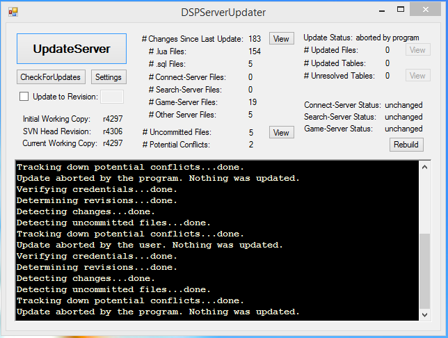 I believe this was replaced by SVN direct download/update and not supported anymore.Ayame wrote:I'm getting 2 Potential Conflict when updating my server there for it wont let me update my Server ><