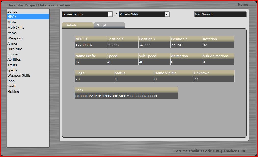 Added a script viewer to NPCs, Zones, Mobs, Items, Abilities and Spells. Will need to change the path to your scripts in the 'GlobalVariables.php' located in the config folder.
