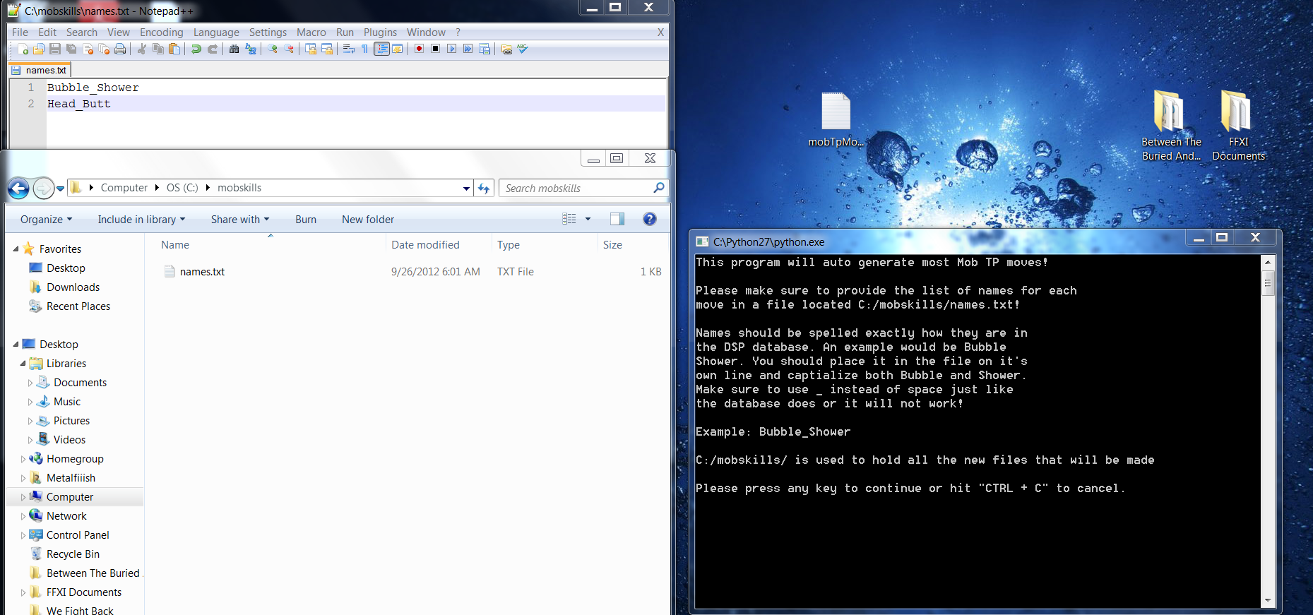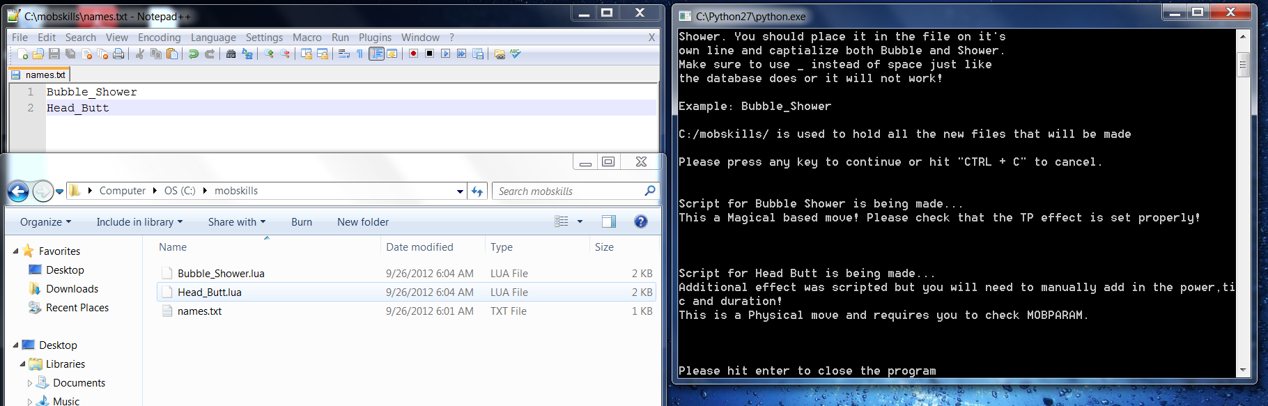 All you have to do is make the list of moves you want and place it in the folder C:/mobskills/ and names the files names.txt. When it is done making the moves you can view the output to see some little notes about each move.