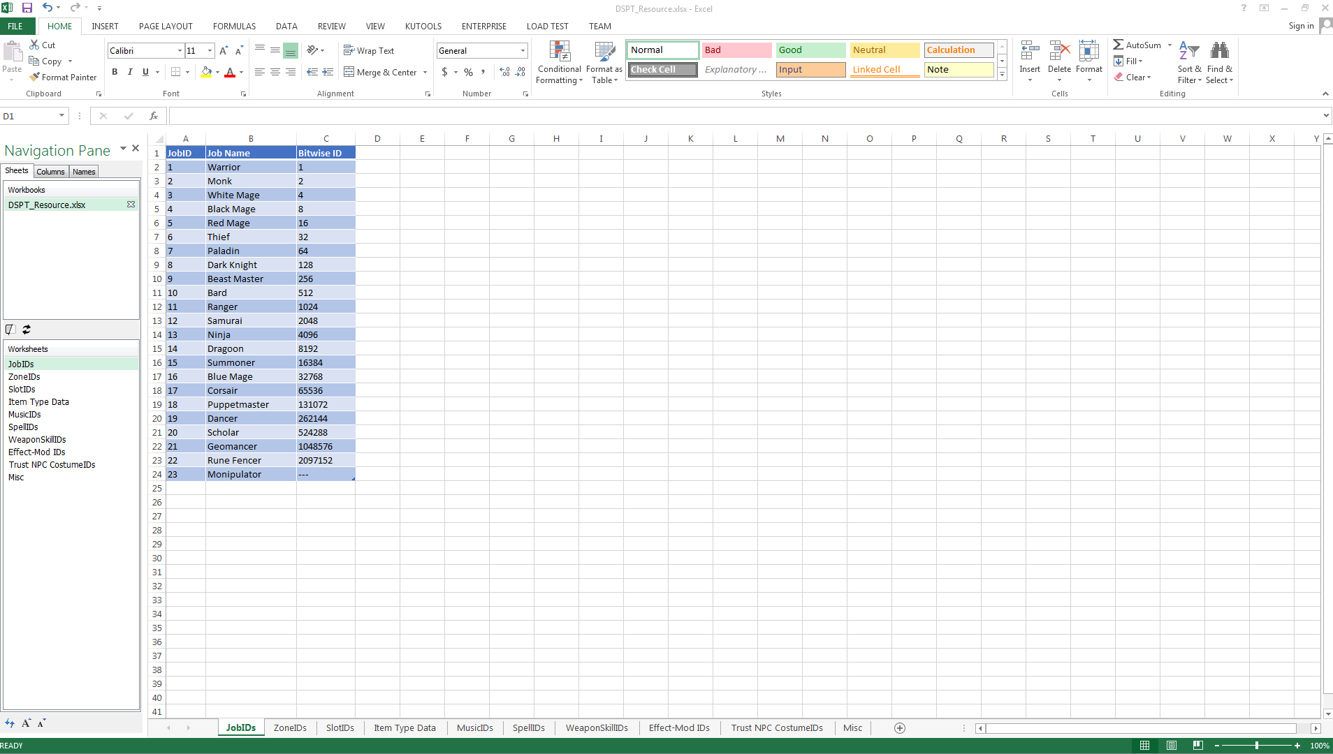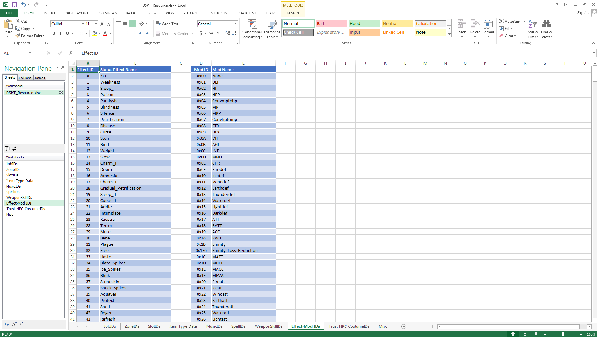 I've spent some time compiling stuff that I find while working with previously found data that I use often, and trying to organize it all in one place. I've been keeping everything in separate tabs within an excel book. I know a good 80~% of this is likely available elsewhere (i.e. the wiki), but I like to have things in one spot in front of me while working. I figured I would share this in the hopes that somebody else finds it useful. If people do I'll update regularly.
